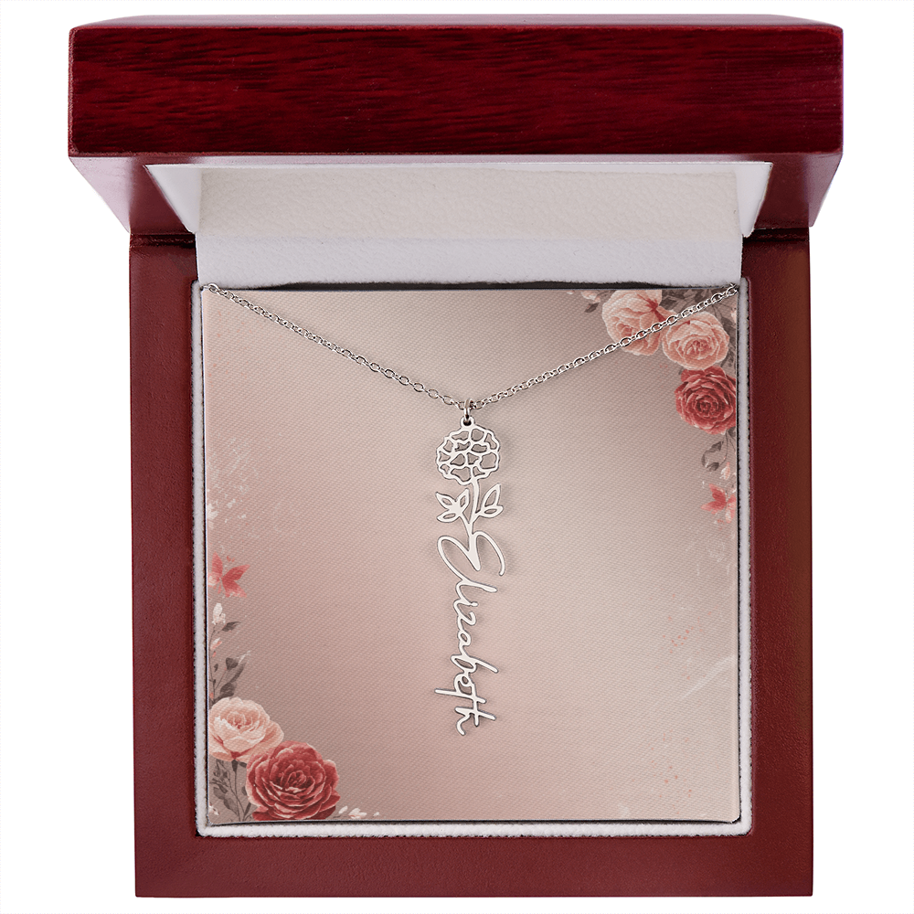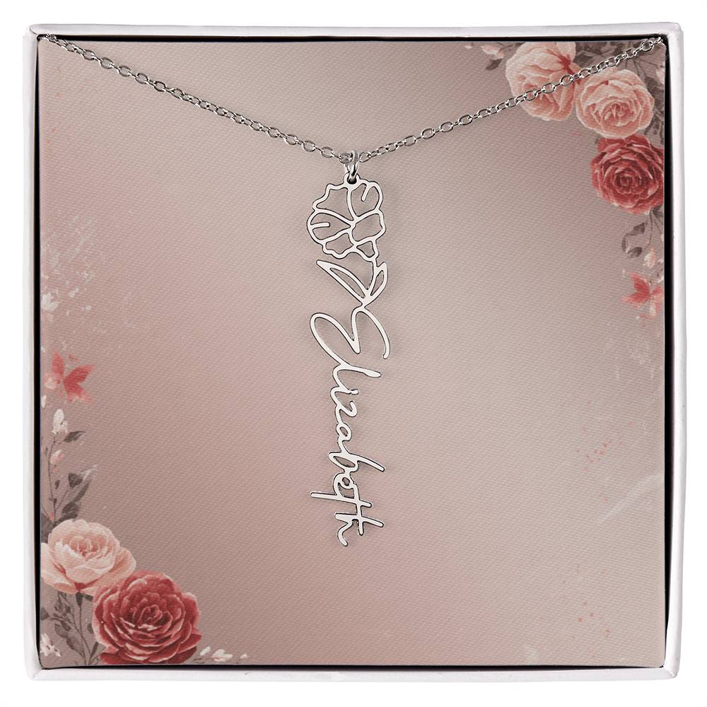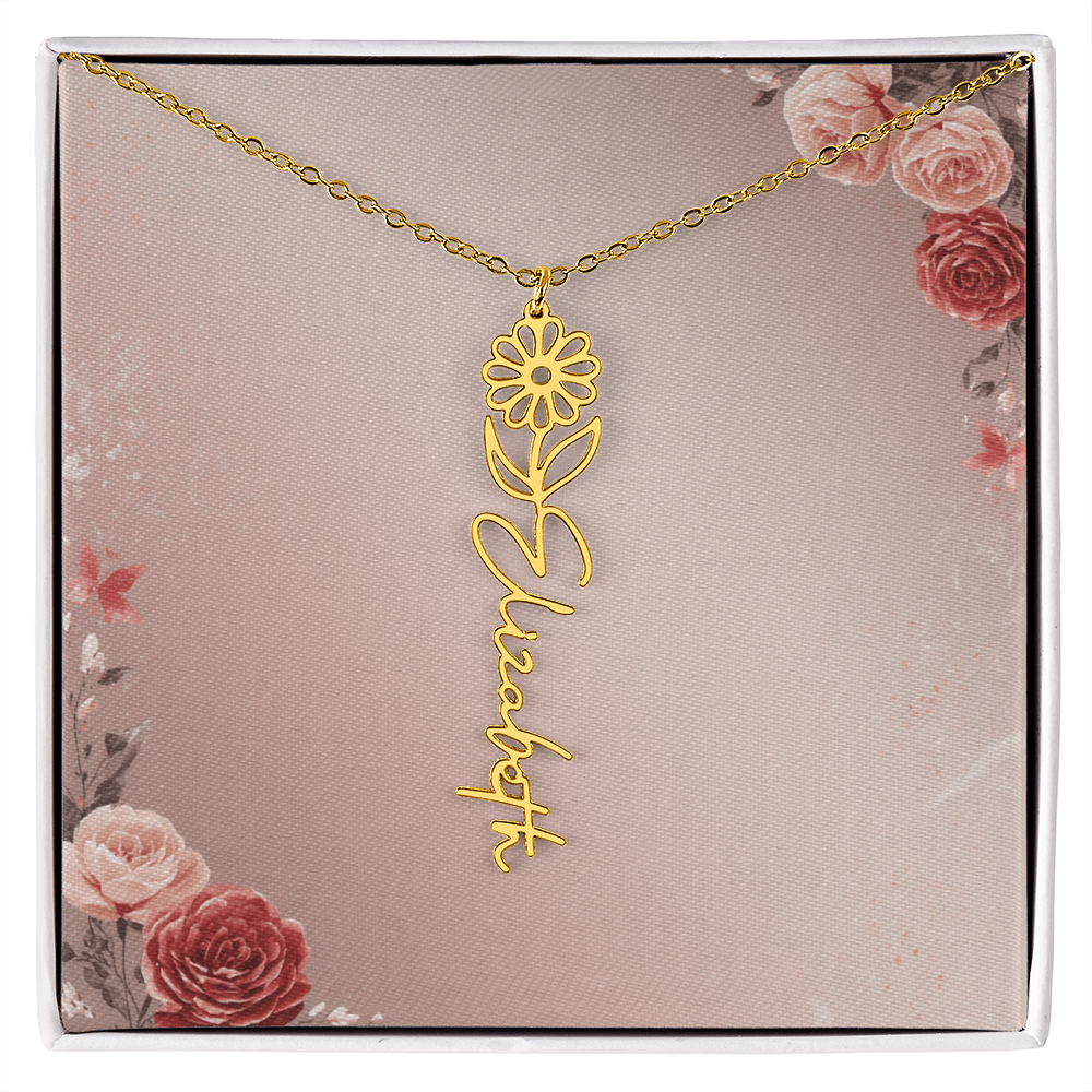The Blooming Love – Custom Name Necklace is a delicate, personalized keepsake designed to celebrate love in its most meaningful form. Featuring a beautifully crafted name pendant accented with a floral detail, this necklace is custom-made just for her — a timeless reminder of someone special, always close to the heart.