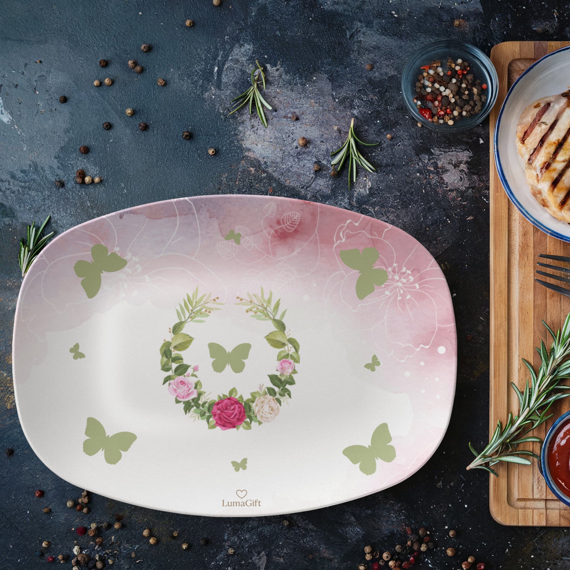 Bring the beauty of spring to your table with our Butterfly & Flowers Dish, designed in delicate shades of pink and adorned with graceful butterflies and blooming florals. Each piece is a celebration of elegance and joy, turning every meal into a moment of charm and serenity.