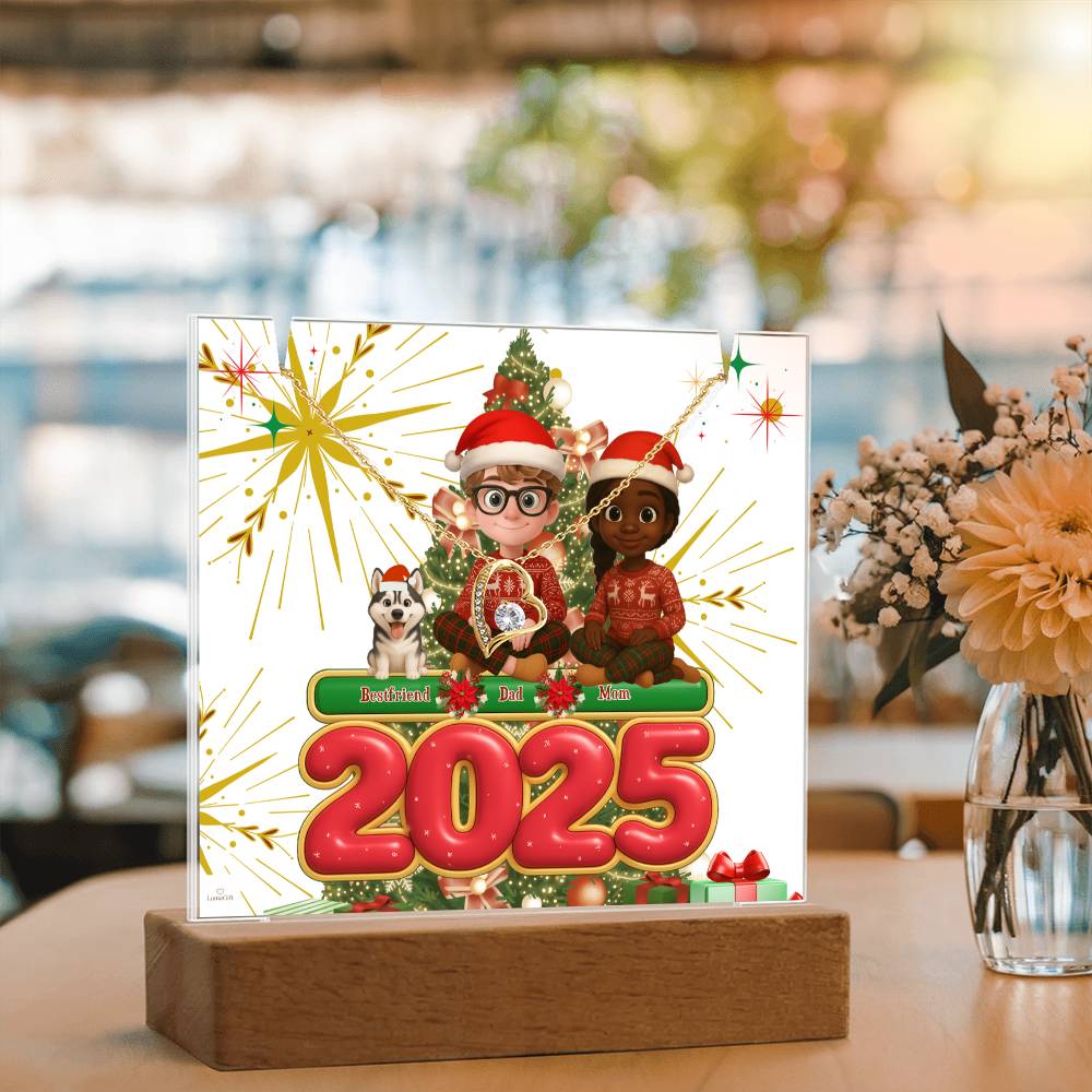 Your Keepsake Acrylic comes with a stylish wooden LED base, and you can choose between a USB plug-in option OR a cordless battery-operated option (requires 2 AAA batteries, not included). Both LED bases feature 7 vibrant colors, allowing the user to customize the lighting with various color changes and dynamic cycles.
