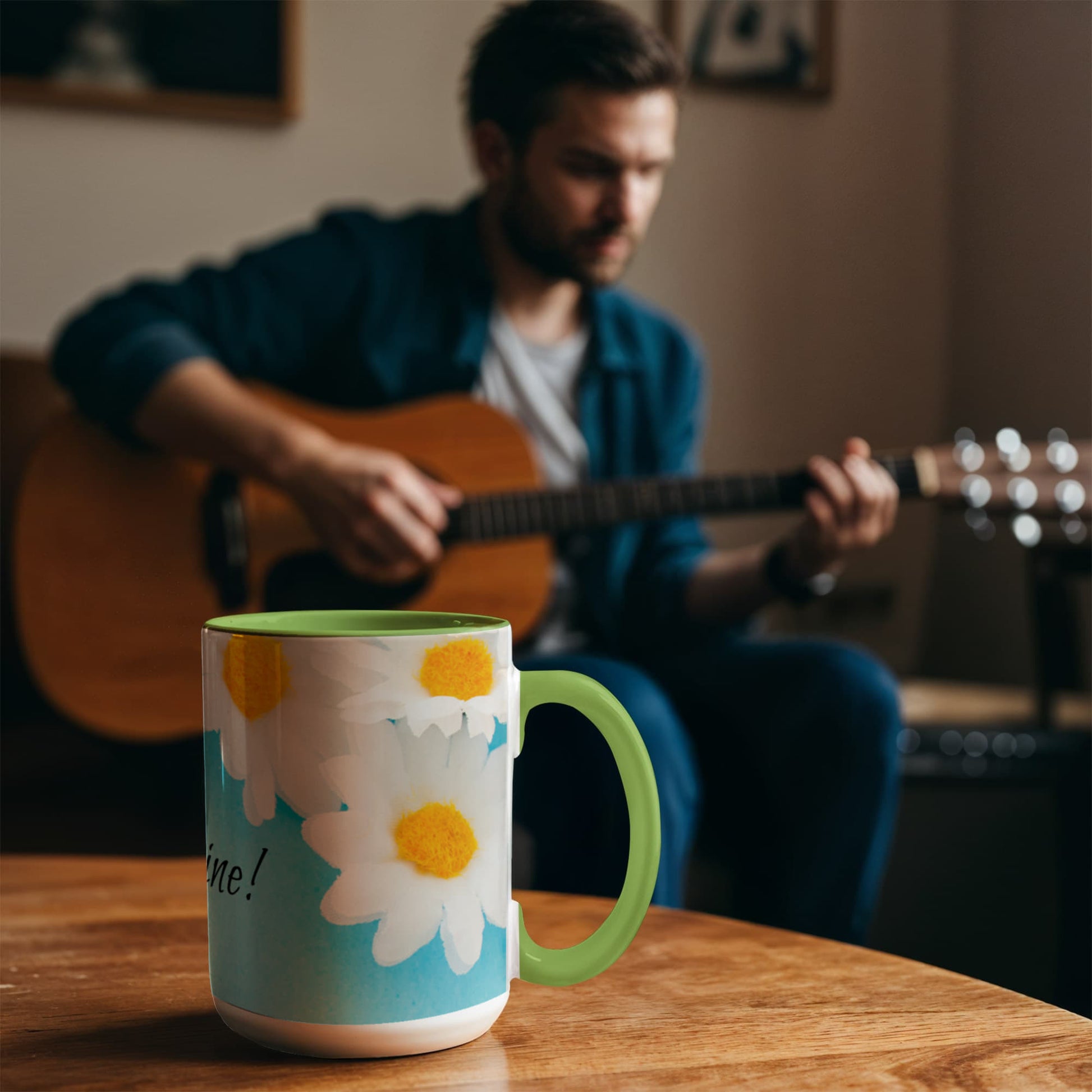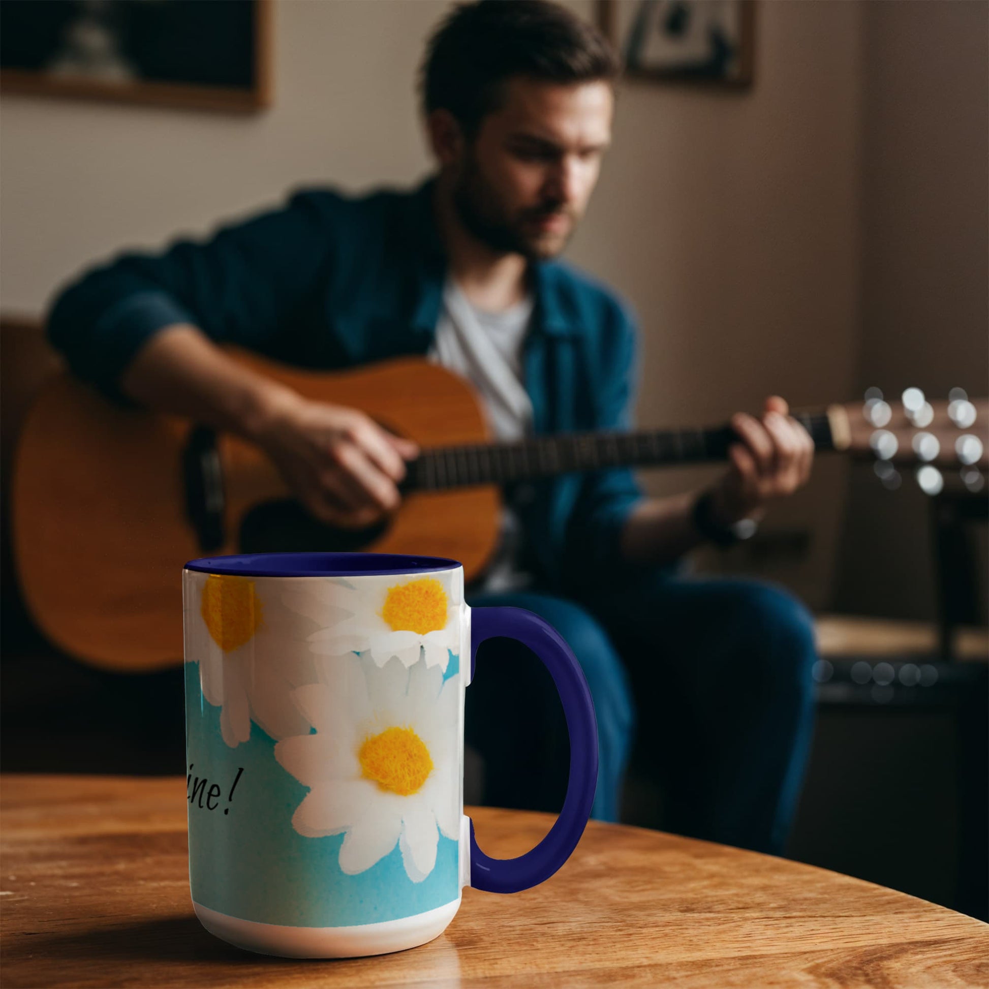 - High quality ceramic mug with two-tone rim, interior, & handle